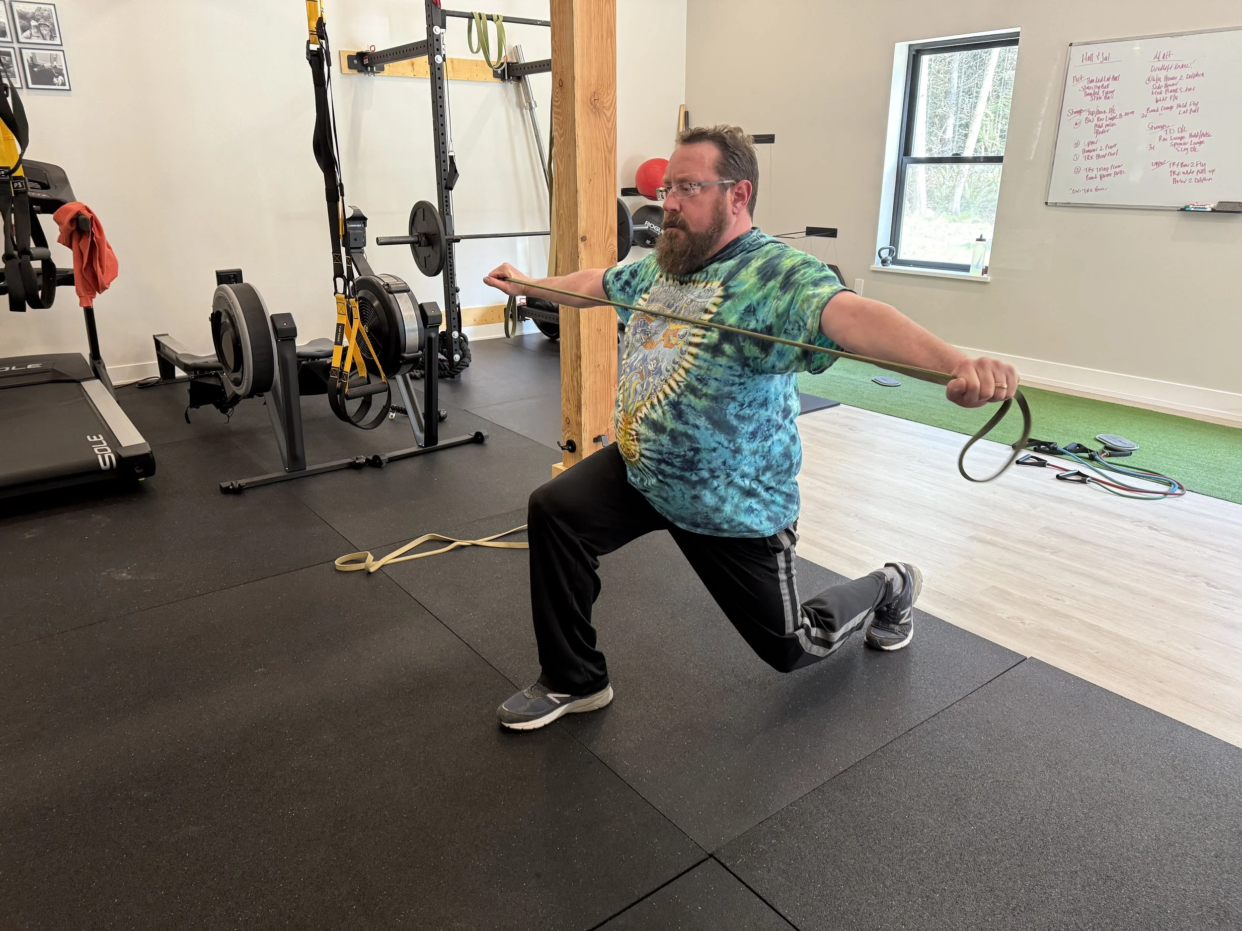 My home-based studio is private and available by appointment. An initial assessment is included in your first session. All training sessions are 55 minutes with the exception of your first session, approx 75 min. After our interview, we will run through movement patterns to discover your joint mobility, muscle flexibility, and strength. We will run through basic movements (squat, hinge, push, pull, and carry) and work together to find circuits that will keep you moving safely and effectively.